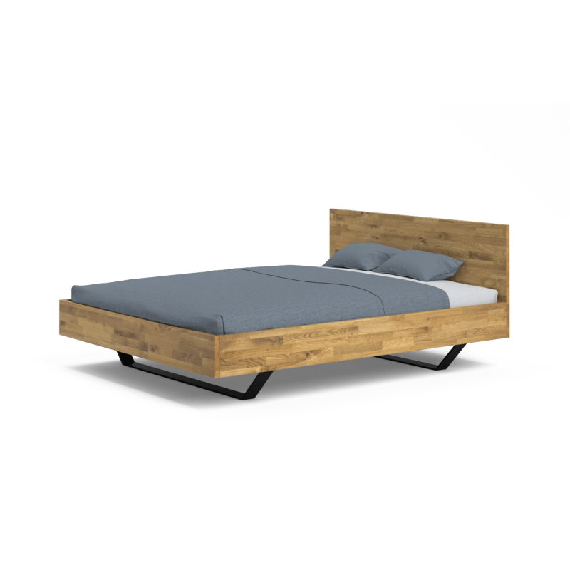 Das B39 ist ein minimalistisches Schwebebett mit Metallkufen und erhöhtem Kopfteil aus Holz. Neben diesem Modell gibt es mit dem B39-PK ebenfalls eine Variante mit gepolstertem Kopfteil.