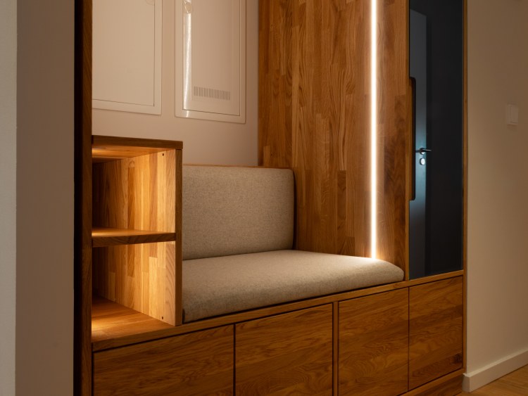 Vom Durchgangsraum zum Wohlfühlort: Eine Wandnische im Flur wurde zur maßgefertigten Garderobe aus massiver Eiche – mit Sitznische, Stauraum und Platz zum Ankommen...